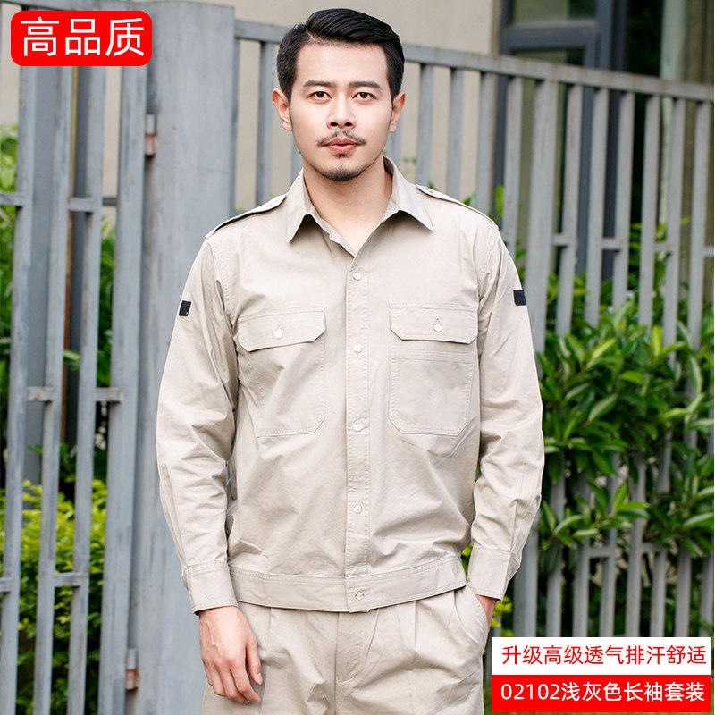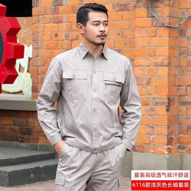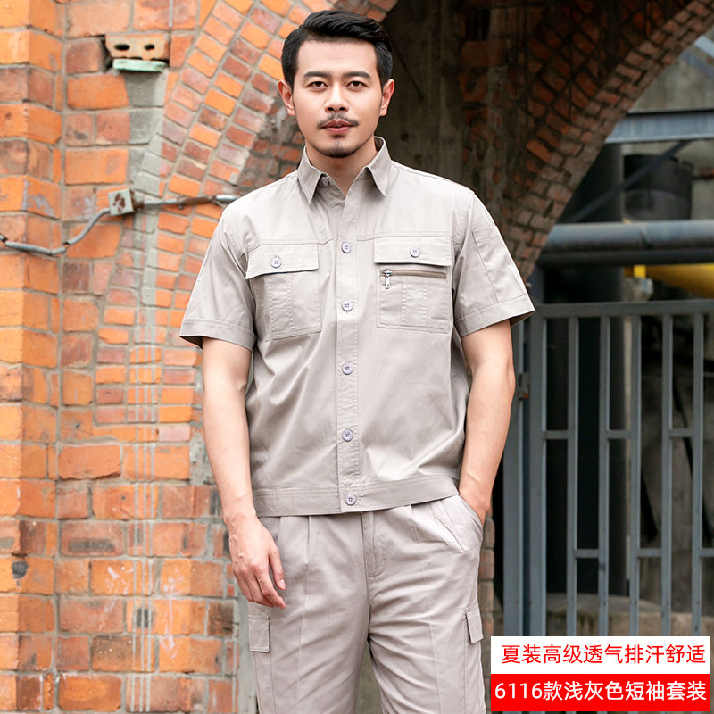 Summer full cotton thin section Worksuit suit men's pure cotton long short sleeves breathable national grid Electrical steam repair labor conserved