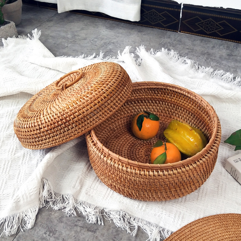 Vietnamese autumn rattan snack candy basket home creative divider with lid storage basket living room coffee table desktop storage box