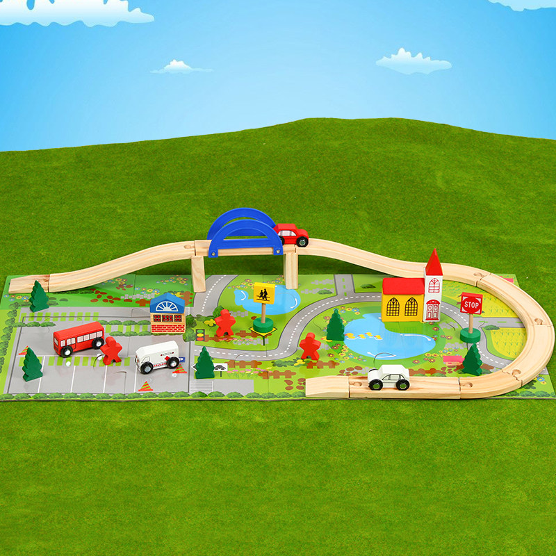Wooden track 100 smaller train suit building block infant child toy wooden racing boy puzzle 2-5 years old