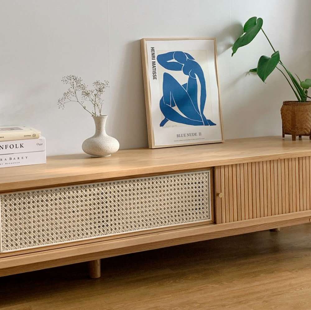 Rattan-made solid wood TV cabinet modern minimalist small household type ground cabinet living-room storage containing cabinet Japanese style home TV cabinet