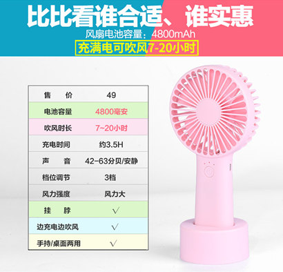 Ultra-long-range wind mute USB handheld charging mini-fan students attending classroom portable fan