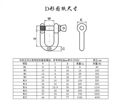 316L stainless steel D shackle 316U ring U-shaped boat buckle steel buckle umbrella M5M6M8M10M12