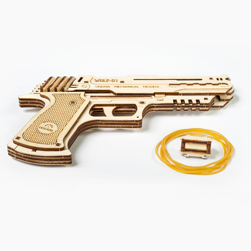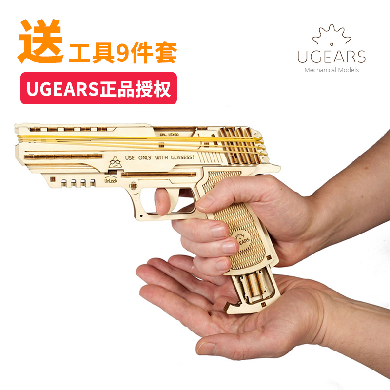 Ukraine UGEARS wooden mechanical transmission model can be issued with a rubber band pistol assembly toy gift for boys