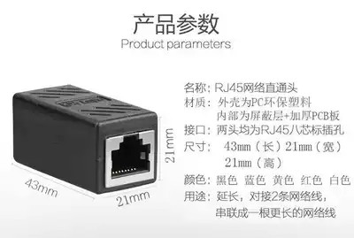 High-quality two network route connector RJ45 port network double-pass through head network route extension connector pair connector