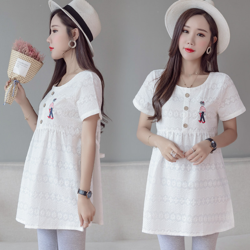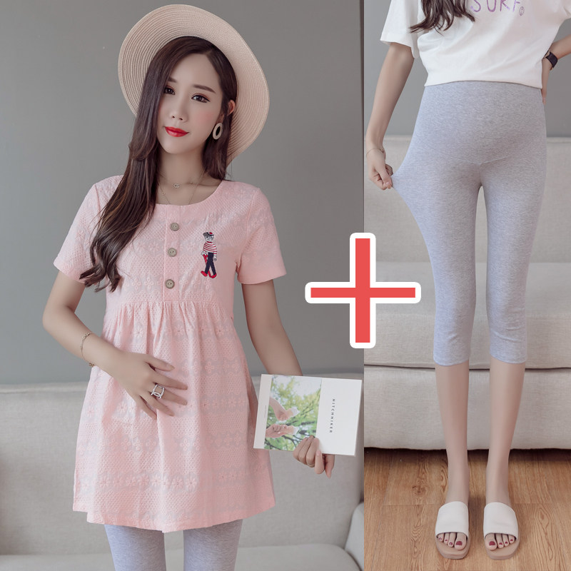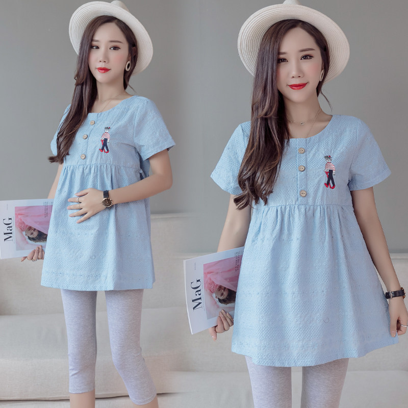 Pregnant Woman Summer Clothing Short Sleeve T-shirt Shaded Ocean Dress Suit Fashion 2022 New Spring Summer Pure Cotton Clothes T