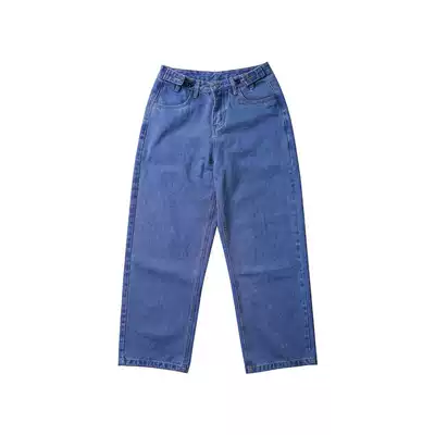 Hong Kong style retro daddy pants hipster men and women BF style loose wide-leg pants street shot solid color trumpet straight denim pants
