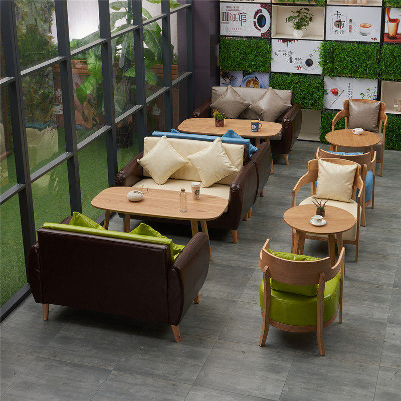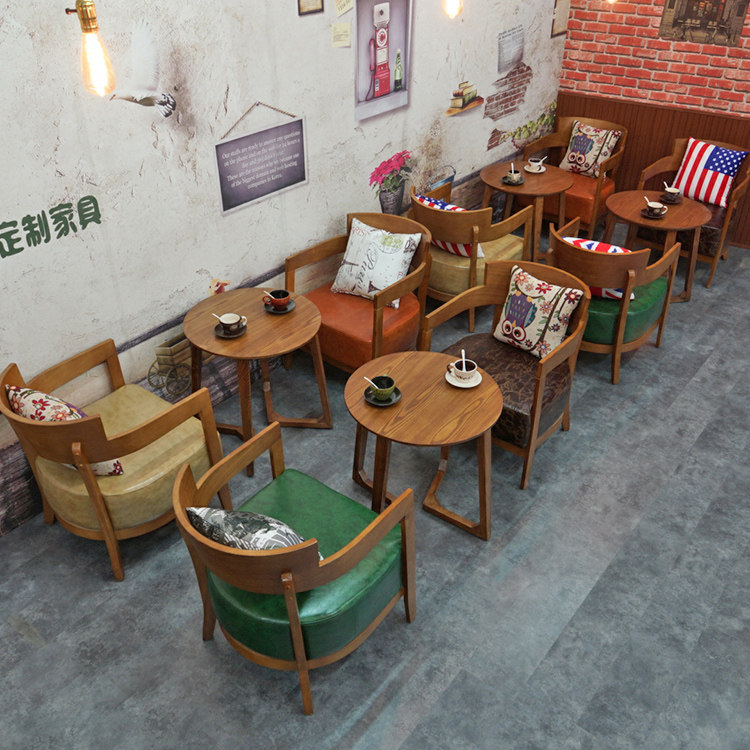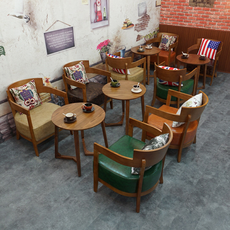 Casual Milk Tea Shop Table And Chairs Combined Fresh Dessert Shop Cake Baking Bacon Cafeterie Solid Wood Sofa Chair Brief-Taobao