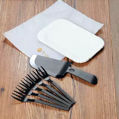 Birthday cake plate Disposable cake knife and fork set fork plate black three-tooth fork birthday tableware set wholesale