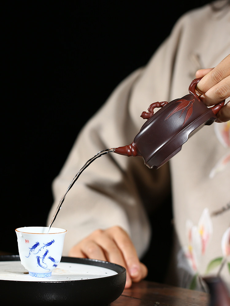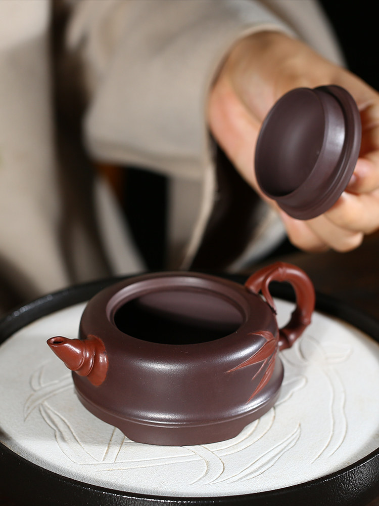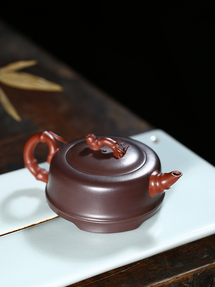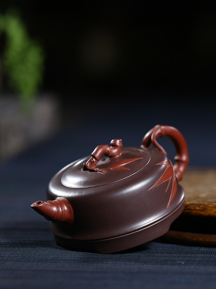 Yixing purple sand pot teapot raw ore purple mud two-color bamboo full handmade famous sketch kung fu teapot household tea
