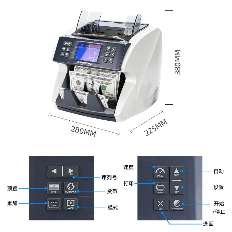 Bank Class A banknote detector CIS recognizes multi-country customized foreign currency banknote counter machine US, European and British total amount printing 770