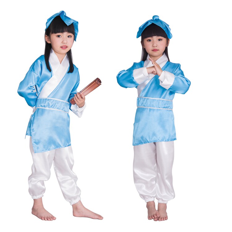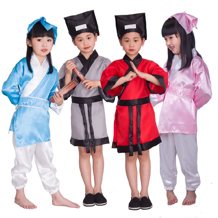 3 pieces of blue (headdress clothes pants) Book children 3 pieces of powder (headdress clothes pants) national school dress grey (hat belt three pieces) national school clothes red 3 pieces (hat clothes belt)