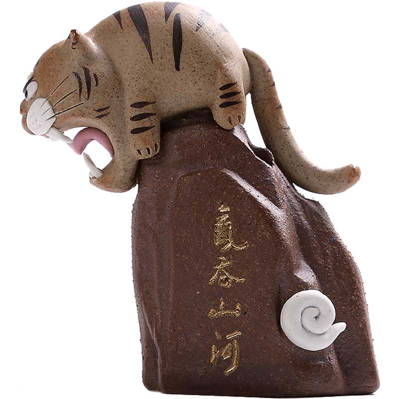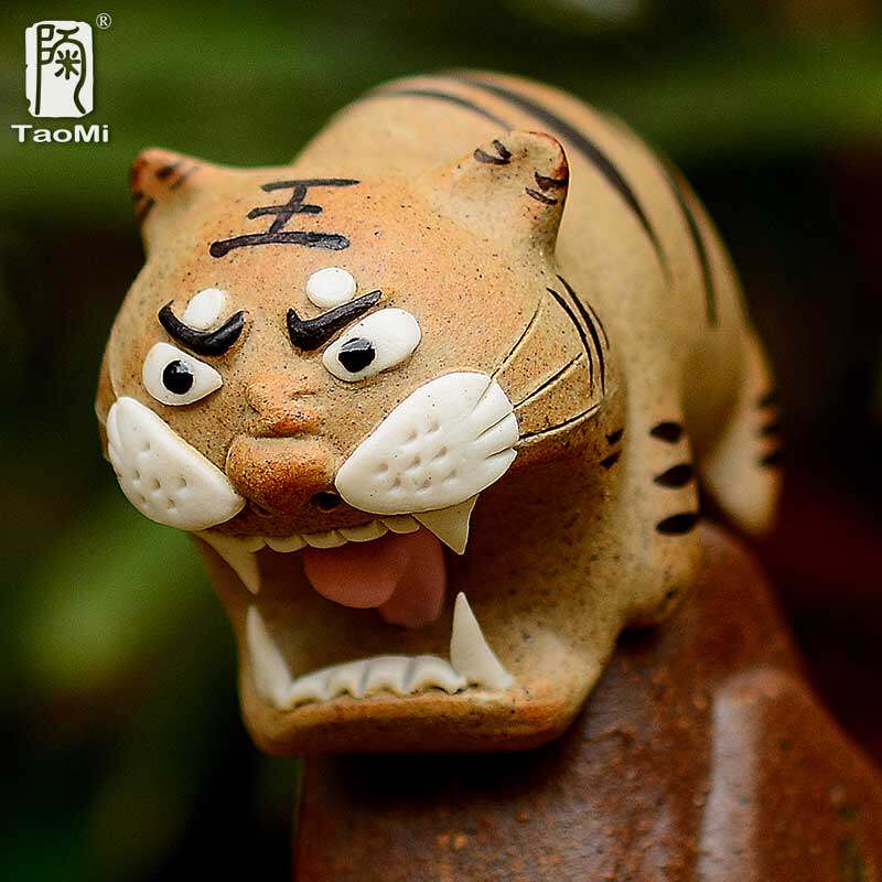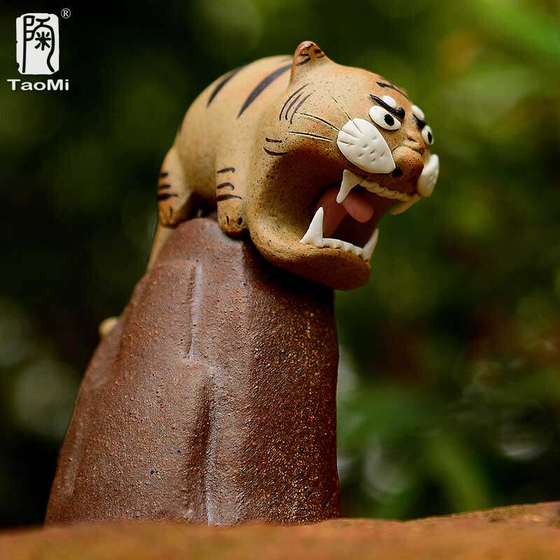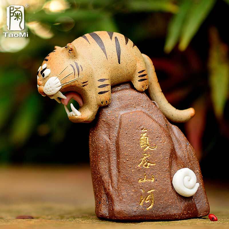 Pottery fan tiger ornaments Qi swallow Mountain River Yixing Purple Sand Tiger Xiao tea set Tea ceremony accessories Handmade tea pet ornaments can be raised