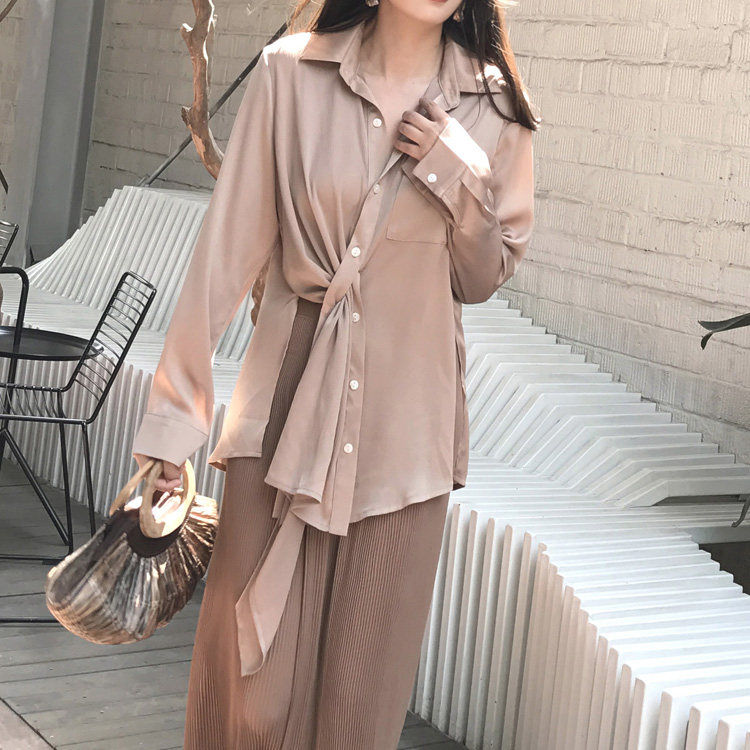 (LAMBO exclusive@t) Import Dark Creep Satin 2 way wear a chic design shirt