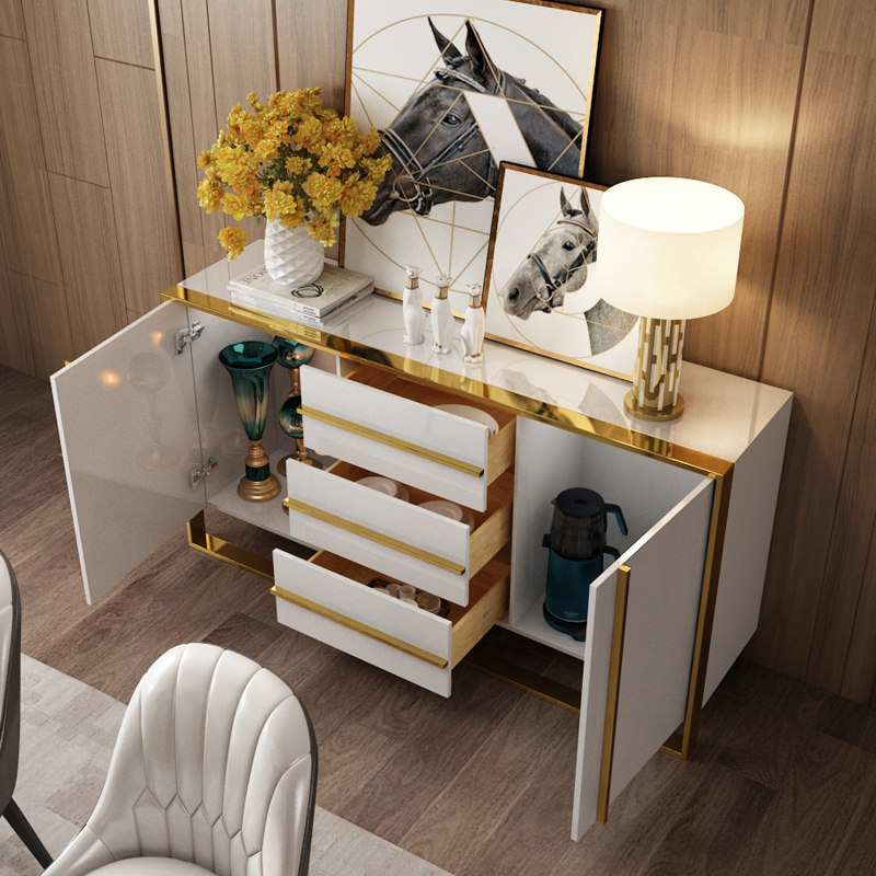 Post-modern minimalist sideboard paint tempered glass light luxury side cabinet restaurant tea preparation cupboard storage cabinet