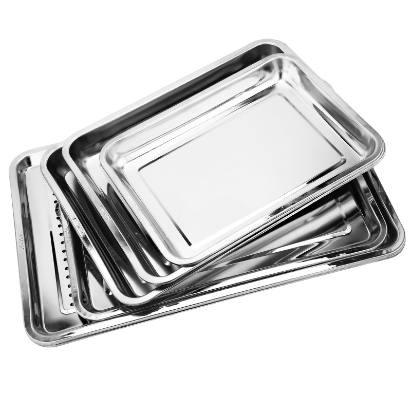 Stainless Steel Nursery Tray With Holes Cool Leather Plate Stainless Steel Plate 304 Home Dinner Plate Rectangular Water Dumplings Plate
