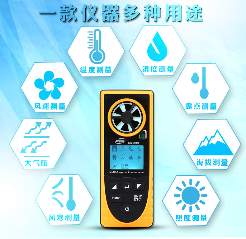 Pew-wise GM8910 multifunction anemometer wind speed gauge wind chill dew point temperature and humidity illuminance meter elevation atmospheric pressure