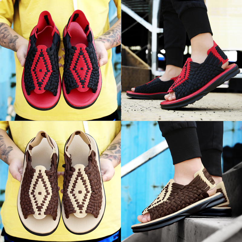 Genuine leather 2022 new word drag Inron casual men handwoven slippers beach non-slip Han version sandals