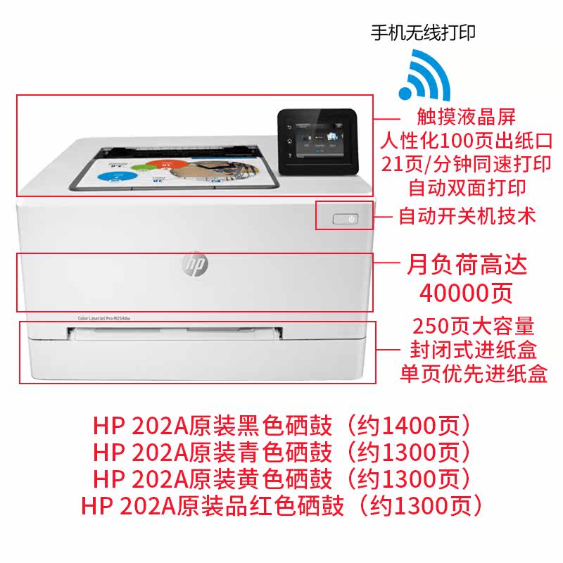 Hp HP m254dw color laser printer automatic double-sided photo development mobile phone direct wireless WiFi wired network small office home A4 photo printer excellent HPM252d