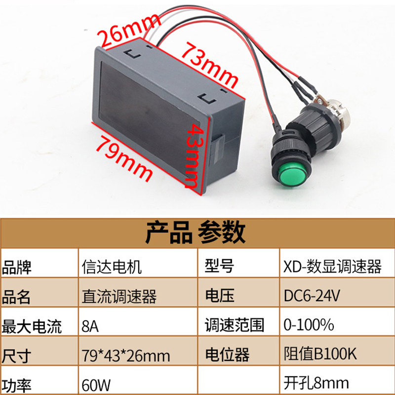 DC digital display governor 12V24V deceleration motor high power speed regulation switch PWM stepless speed regulation control board