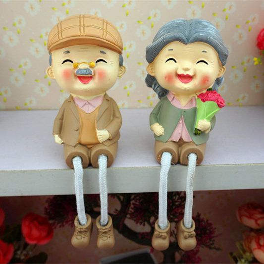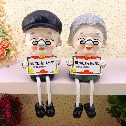 Creative small gifts resin old man granny couple ornaments living room home decorations Cute old hanging foot doll