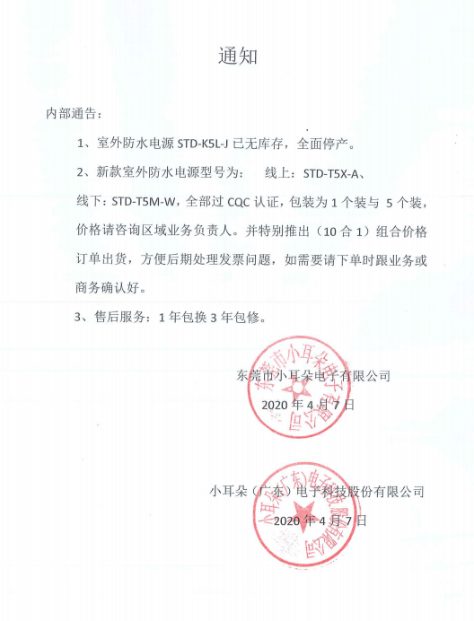 STD-T5X-A (12V2A outdoor waterproof power supply)STD-T2X-S (12V2A indoor power supply) Dongguan small ear crystal head(100pcs)
