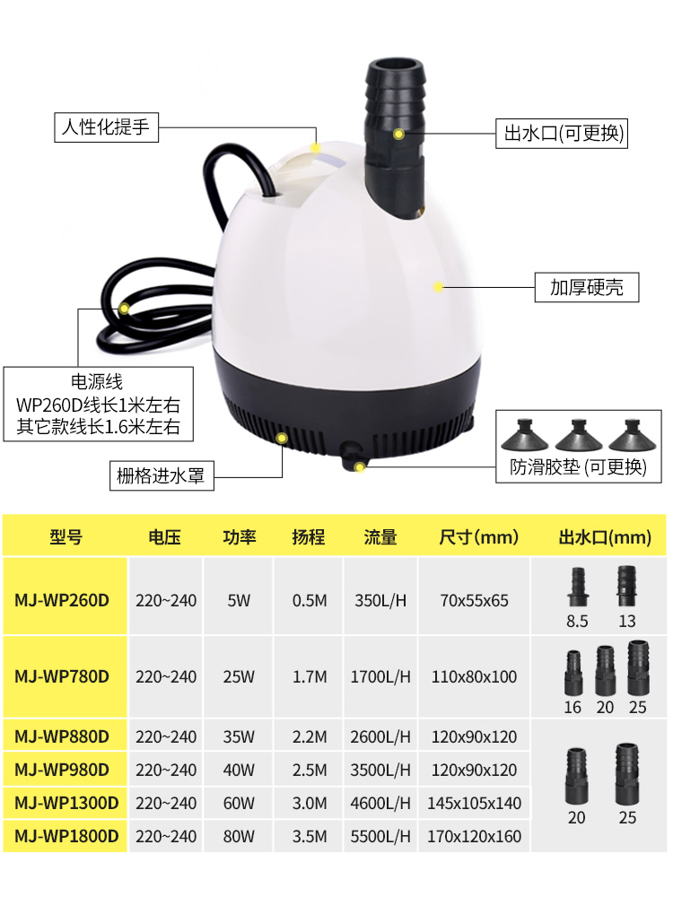 WP880D 35W (send 15m water pipe)WP980D 40W (send 15m water pipe)WP1300D 60W (send 15m water pipe)WP