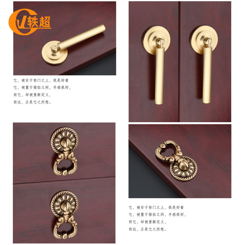 Wardrobe ring handle European style antique single hole handle cabinet pure copper color handle drawer all copper Chinese style handle