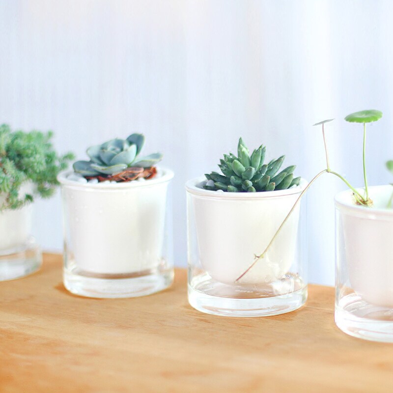 Copper Money Grass Multimeat Plant Hydroponic Green Plant Flower Pot small double layer Desktop ceramic glass transparent Nordic minimalist white-Taobao