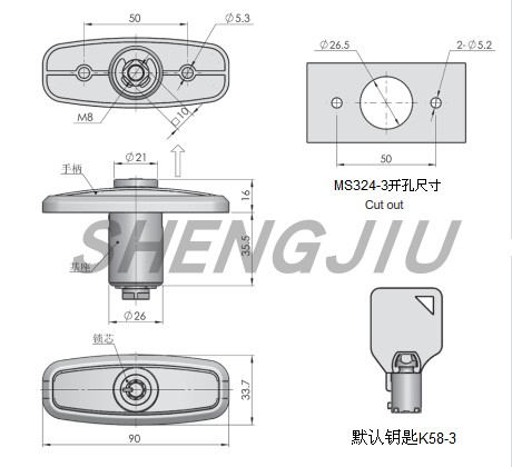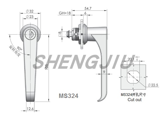 Raw long cabinet lock SJ handle lock distribution cabinet lock MS324 MS324-3 MS324-1B stainless steel