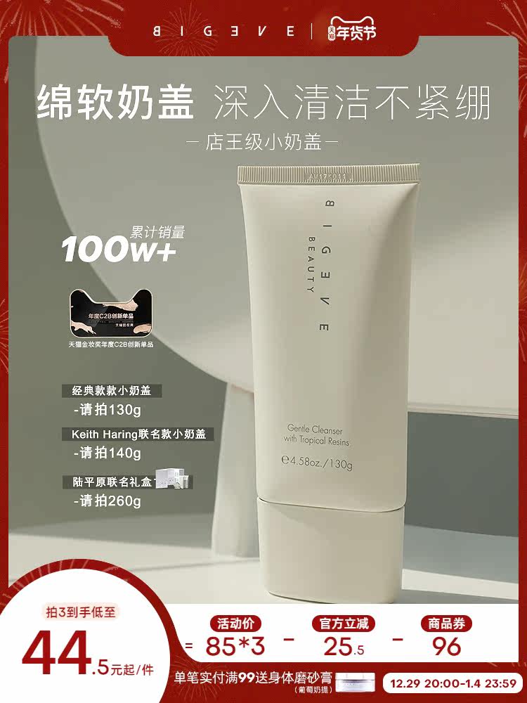 (New Year's gift) BIGEVE Zhang Dayi small milk cap facial cleanser plant mild amino acid deep cleansing