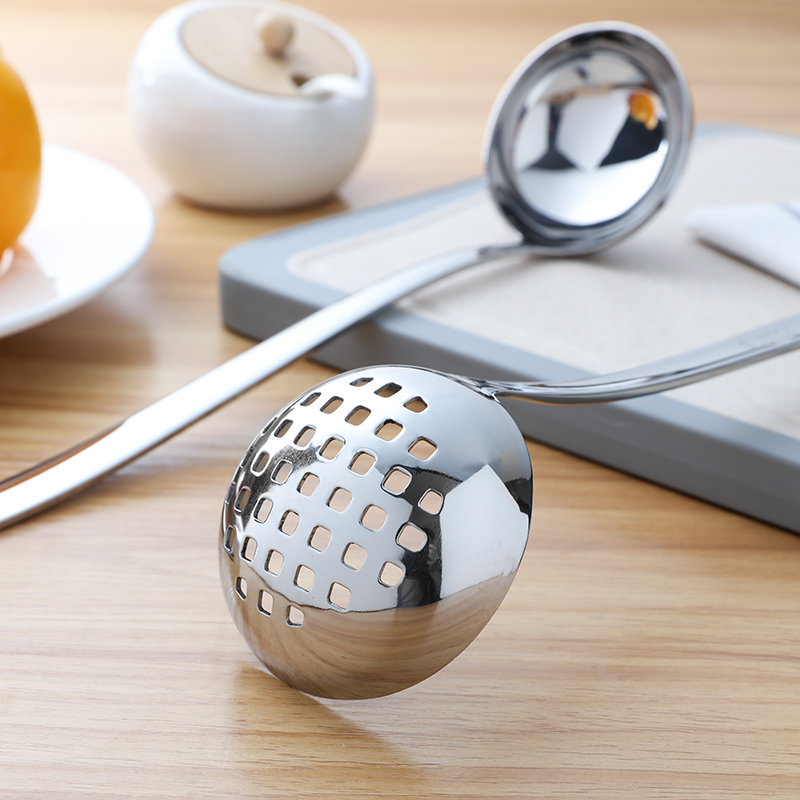 German 304 stainless steel soup spoon leaking spoon hotpot spoons leaking spoon suit big soup shell long handle for porridge spoon kitchenware home