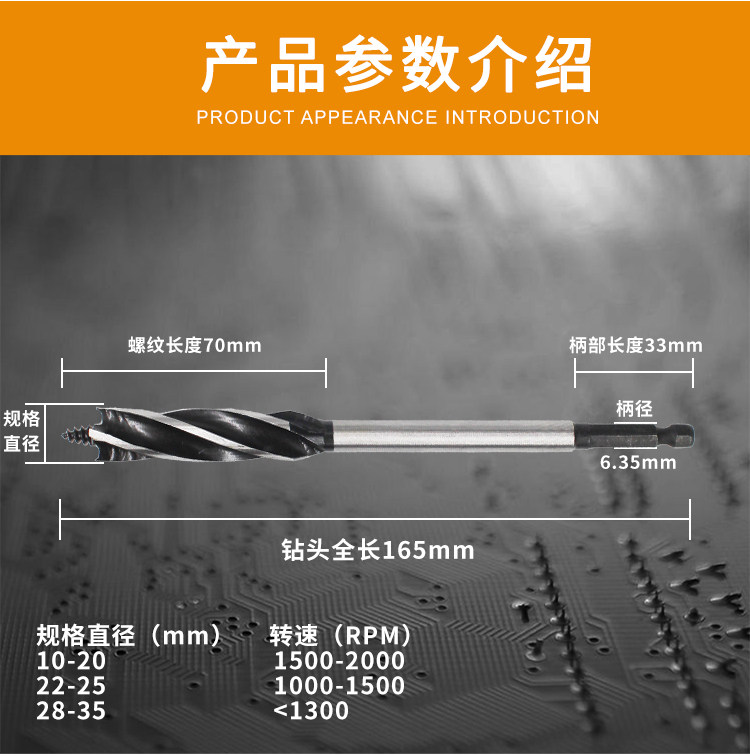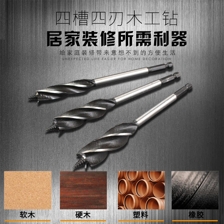 Lengthened 165 woodworking support drill bit four-slot four-edged 10-35mm door lock drawer woodworking drill woodworking drill