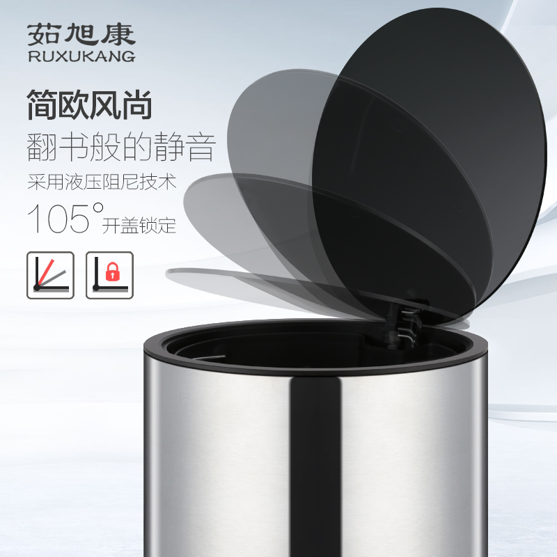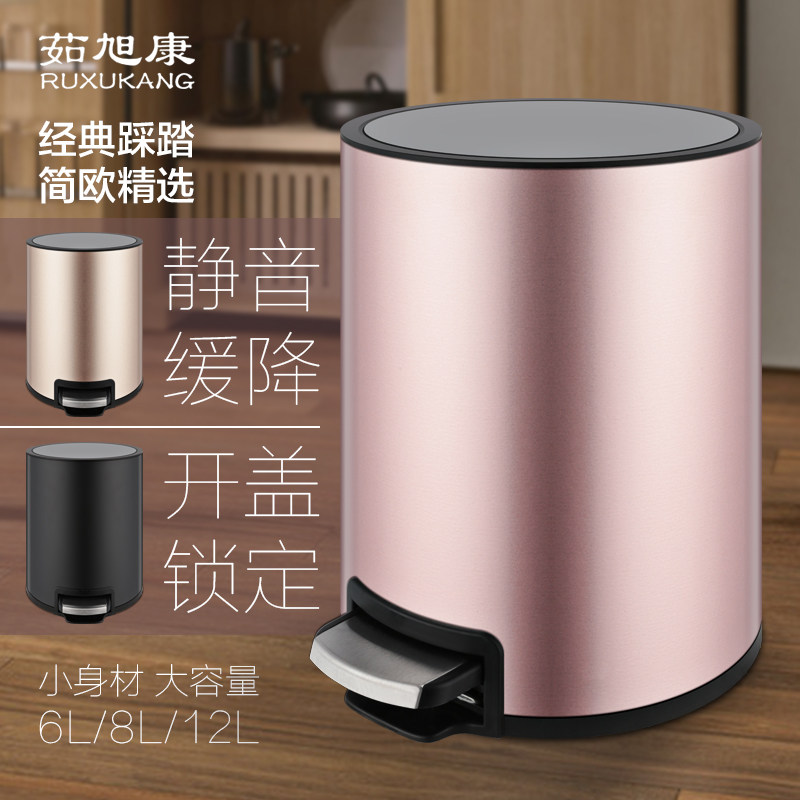 Ruxu trash can household pedal European style creative powder room Kitchen living room bedroom with lid stainless steel trash can