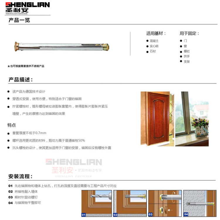 Cross-sunk head galvanized inner expansion screw national standard window type wall tiger floor built-in anchor bolt broken bridge aluminium door and window bolts