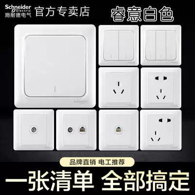 Schneider switch socket Rui Yi white oblique five-hole single-open single-control double-cut one-open two-open TV network whiteboard