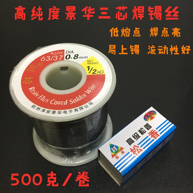 Jinghua rosin core solder wire 500 grams volume solder soldering iron 0 8mm1 0mm lead high bright leave-in tin wire