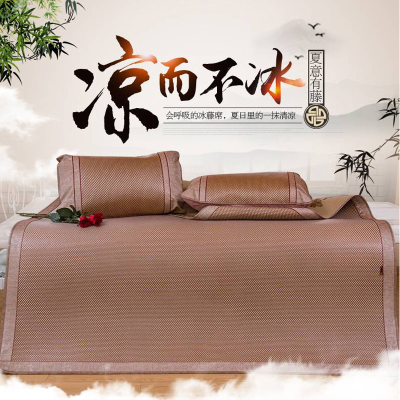 Omisha Ice Silk Mat Thickened Double-sided Laminated Mat 1 5m1 8 m Double-sided Chinese ice rattan mat 2 m rattan mat set to do