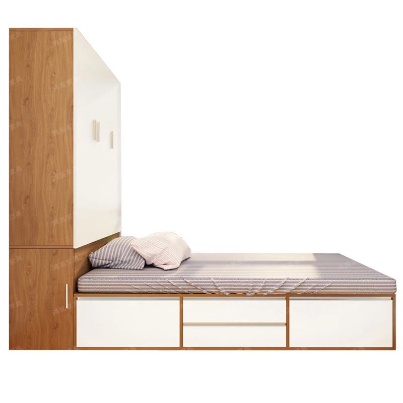 Modern simple multi-functional tatami high box storage double bed bookcase Wardrobe one-piece combination custom small apartment type