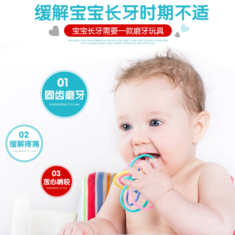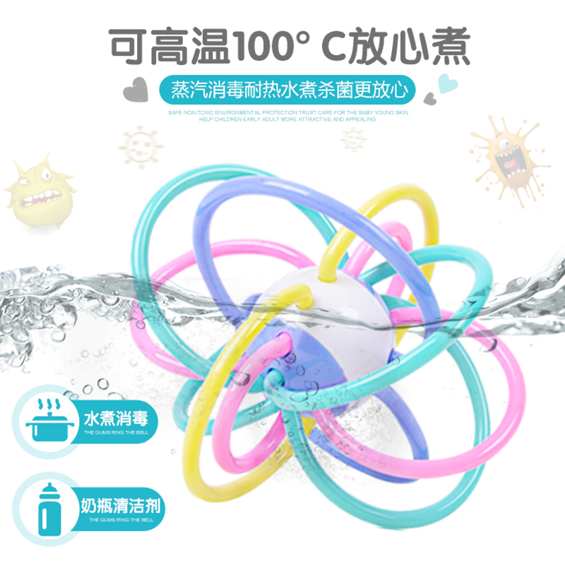 Baby tooth rubber grinding tooth stick bite rubber handrings early teach baby puzzle toy Manhattan hands to grab the ball