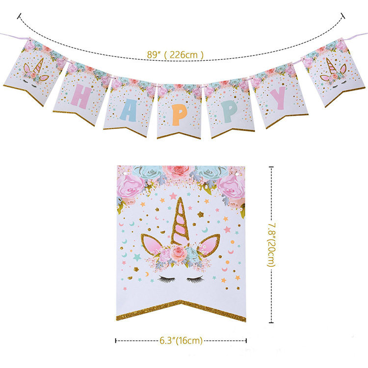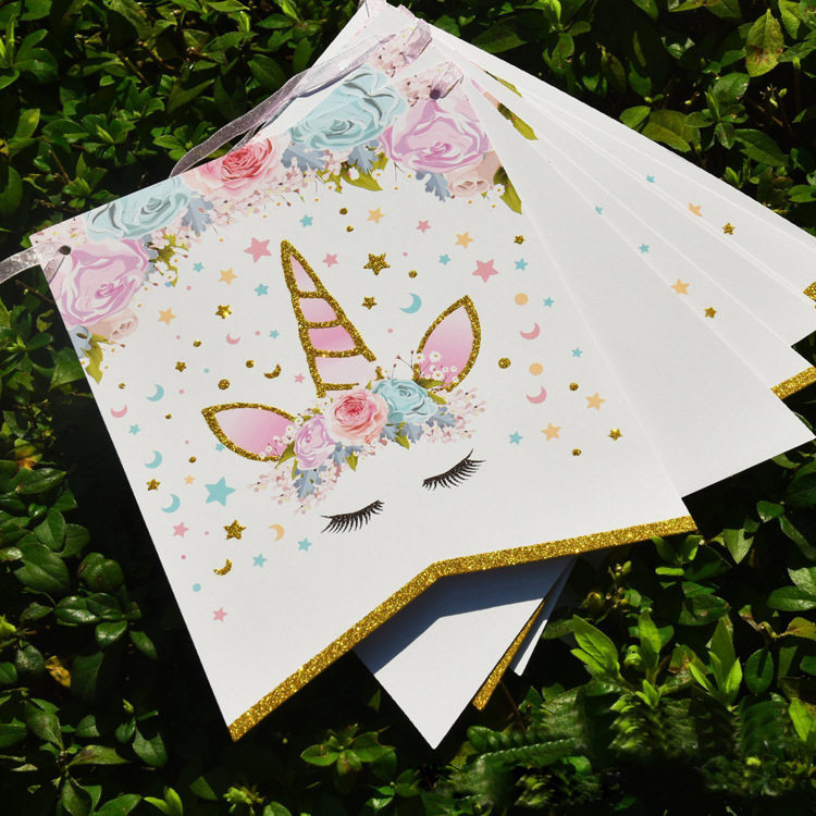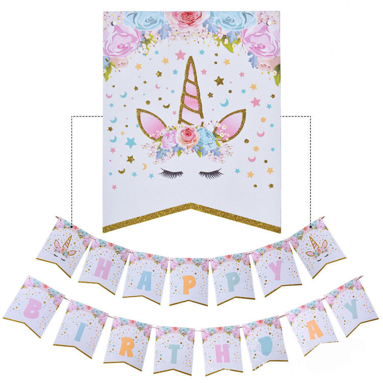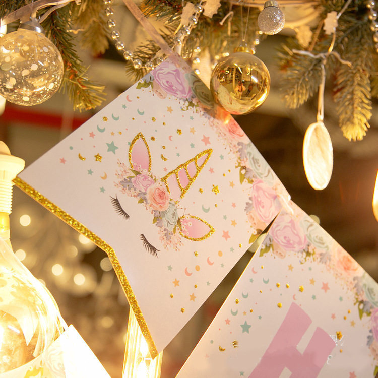 Ins wind net red unicorn birthday arrangement pull flower pony flag Polaroid theme children's birthday decoration bunting