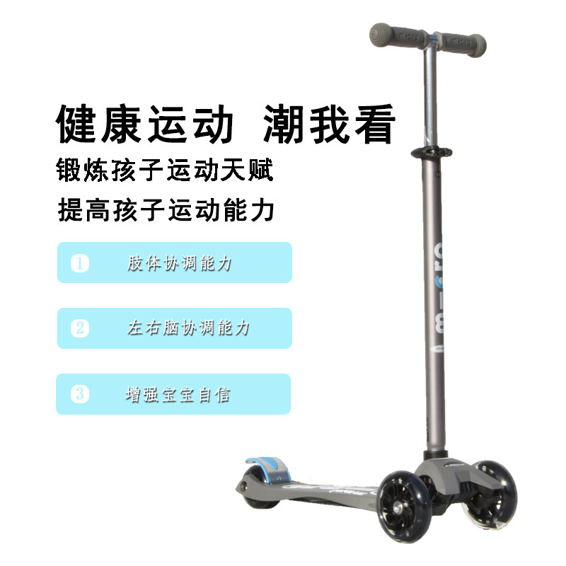Swiss rice high scooter Children's Lift German Poetry Maxi Great Boy Scooter can be folded with large flash wheel LED