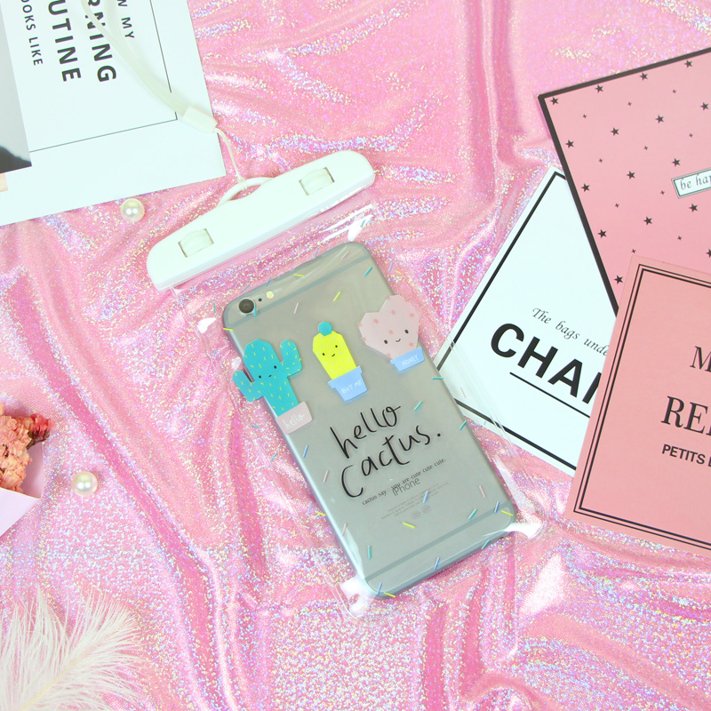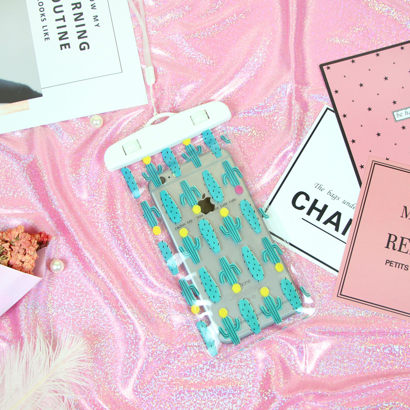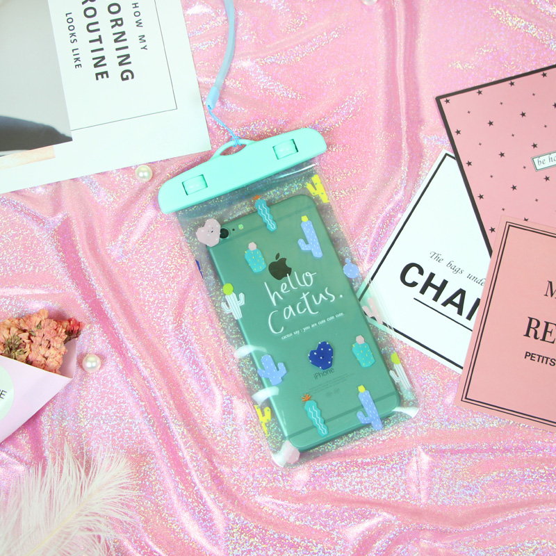 Net Red Ins Cartoon Teenage Girl Mobile Phone Waterproof Bag Day Series Fresh Summer Cactus Hanging Rope Swimming Soak Spa Bag