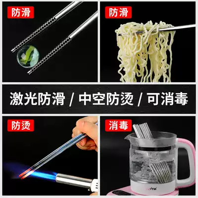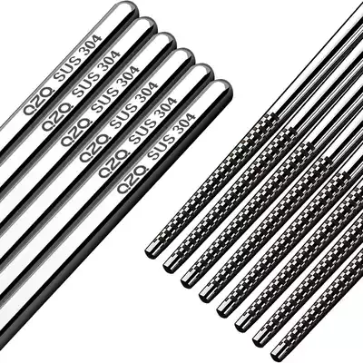 Stainless steel chopsticks 304 household non-slip 10 pairs of family sets metal high temperature resistance and mildew resistance high-end silver iron quick son