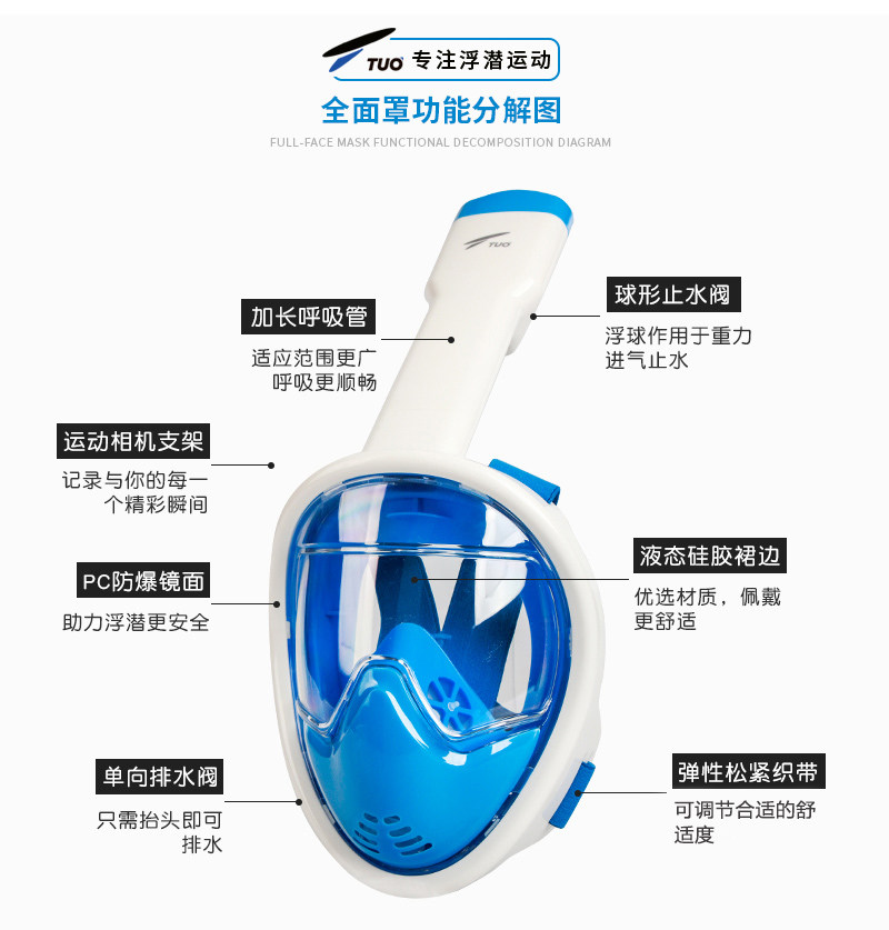 TTUO children snorkeling mask diving mirror anti-fog full-dry straw mirror snorkeling with three-treasure suit diving equipment