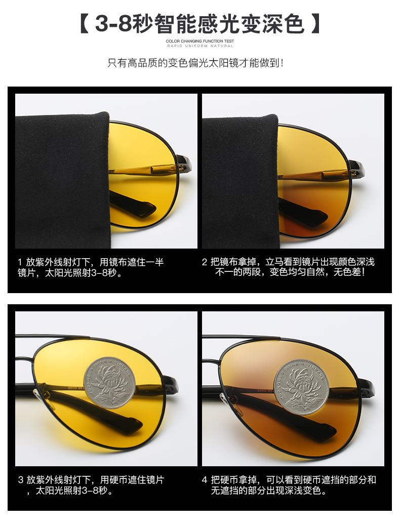 Gun color mirror polarized yellow color discoloration lens black frame yellow polarized lens