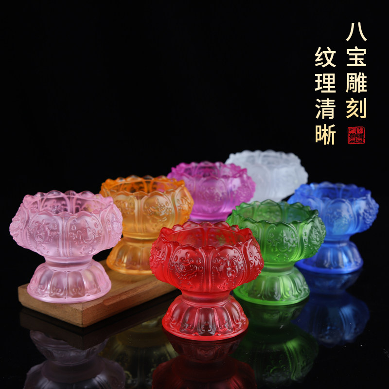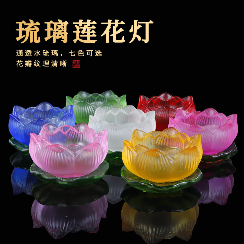 Colorful glazed lotus candle holder butter lamp lamp seat long bright lamp household Buddha candle table Buddha for lamp Buddha lamp for lamp