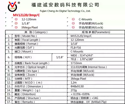 Fujian Cheng'an industrial grade 12-120mm adjustable focal length and aperture large target surface 1 1 8quot interface C