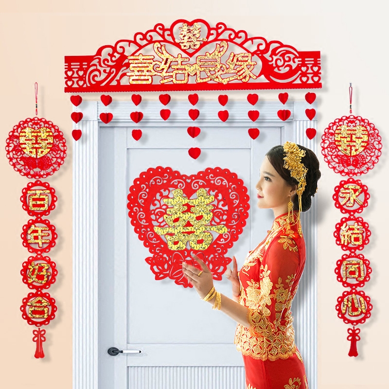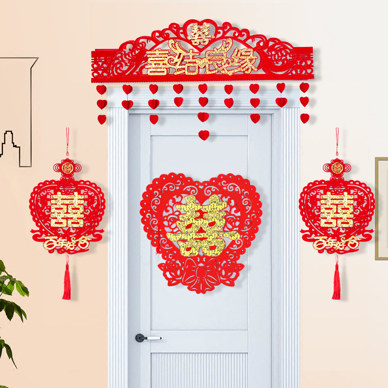 Wedding Celebration Supplies Laflower Decoration Wedding House Decoration Wedding Laflower Festive Arrangement New House Decoration Happy Character Door Curtain Lakflower