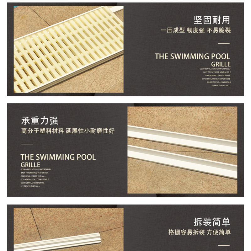 Swimming pool drainage grille cover fixed side rail accessories Pool floor ditch surface grille fixed side slot ABS