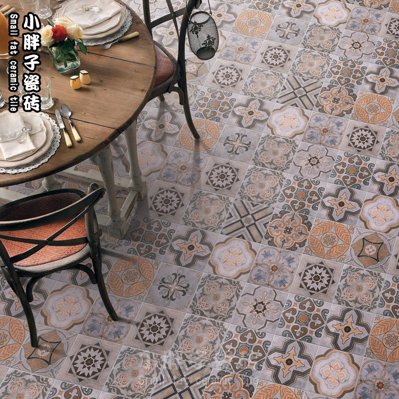 Spanish Retro Grey Cement Flowers Brick 200mm Art Kitchen Makeup Room Tile Living Room Floor Tiles Background Wall